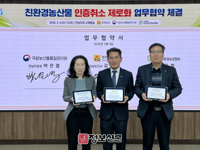 ![]() 전라남도, 친환경농산물 인중취소 제로회 위한 업무협약 체결 |