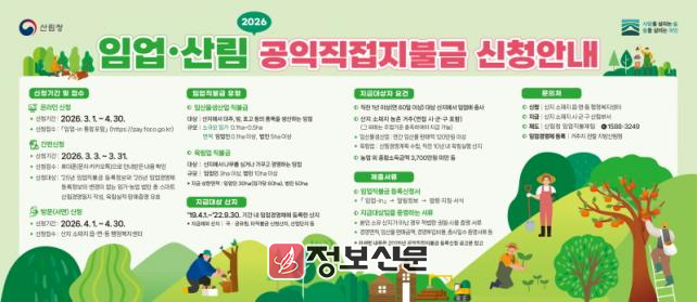 ![]() 전북특별자치도, 2026년 임업직불금 신천 접수 개시 |