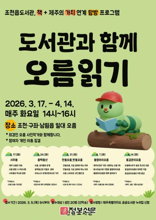 ![]() 조천읍도서관, 도서관과 함께 오름 읽기 운영 |