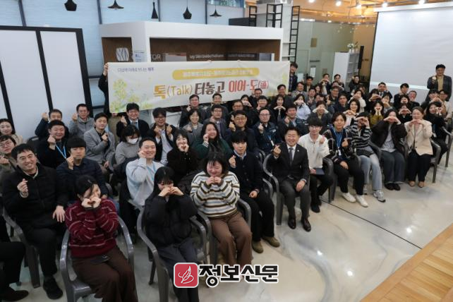 ‘톡(Talk) 터놓고 이어-도(道)’라는 타이틀로 진행된 이날 간담회에는 오영훈 지사와 지영흔 원장을 비롯한 제주TP 임직원들이 참석했다. 이번 자리는 제주TP MZ세대 직원들을 포함한 구성원들의 다양한 목소리를 경청하고, 상생 협력 방안을 허심탄회하게 공유하기 위해 마련됐다.
