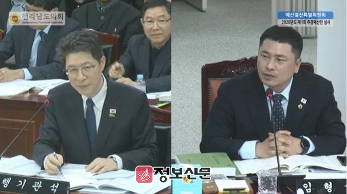 ![]() ◀ 임형석 전남도의원(더불어민주당ㆍ광양1)이 3월 5일, 제397회 임시회 예산결산특별위원회 회의에서 전남도 황기연 행정부지사에게 질의하고 있다.