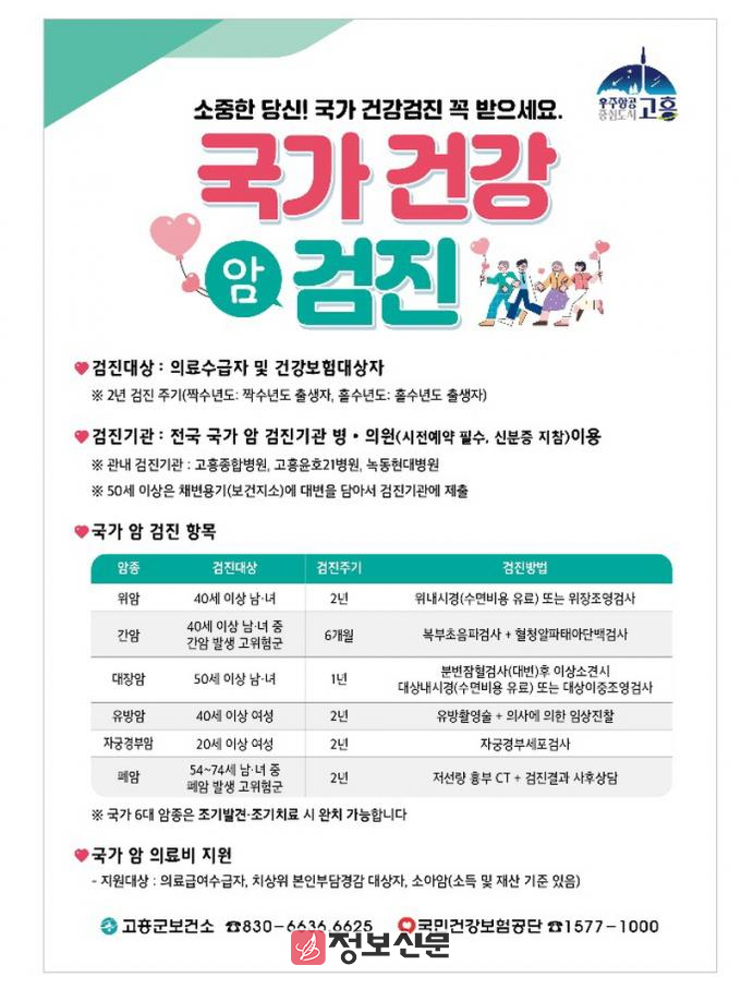 ![]() 고흥군, 2026년도 국가건강검진 및 암 검진 적극 독려 나서 |