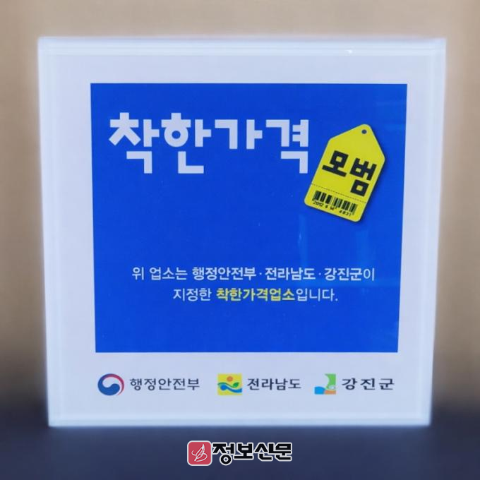 착한가격업소는 저렴한 가격과 위생이 청결해 소비자에게 만족을 주는 업소로, 물가안정을 위해 행정안전부와 지방자치단체가 지정·관리한다. 현재 강진군에는 외식업 14개소, 서비스업(이미용) 3개소로, 총 17개소의 착한가격업소가 운영되고 있다.
