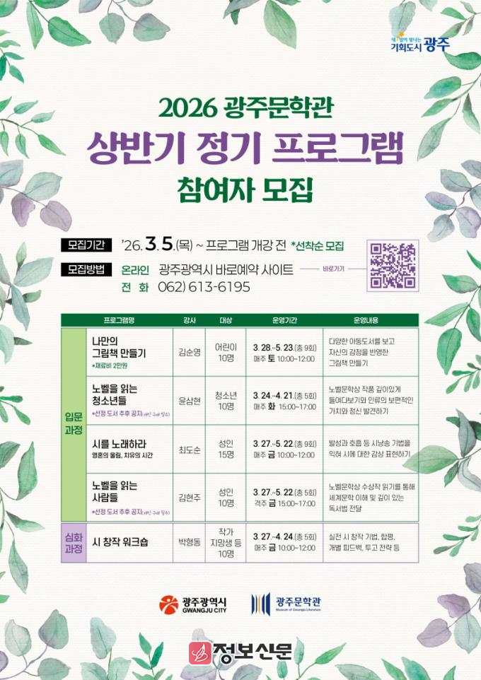 ![]() 광주광역시, 2026년 광주문학관 상반기 정기 프로그램 운영 |
