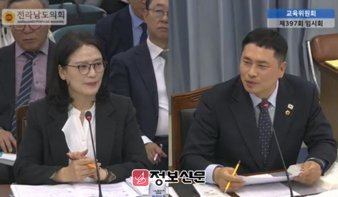 ![]() ◀ 임형석 전남도의원(더불어민주당ㆍ광양1)이 3월 5일, 제397회 임시회 교육위원회 회의에서 전남도교육청 김영신 교육국장에게 질의하고 있다.