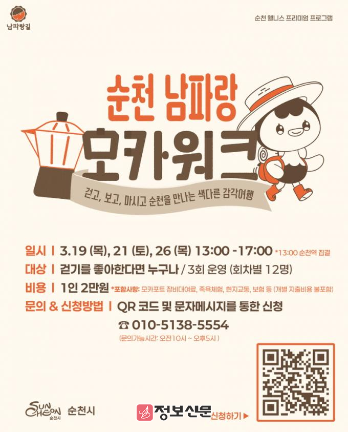 ![]() 순천시, 화포해변에서 모카커피 한 잔 「순천 남파랑 모카워크」 운영 |