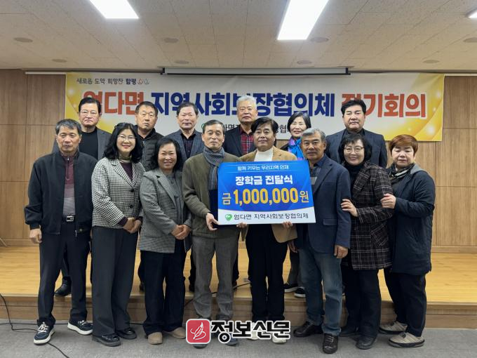 한편, 장학금 전달식에 이어 열린 엄다면 지역사회보장협의체 임시회에서는 올해 지역특화사업으로 추진 예정인 ‘취약계층 청소 지원사업’의 추진 방향을 논의하고 공석인 부위원장을 선출했다.