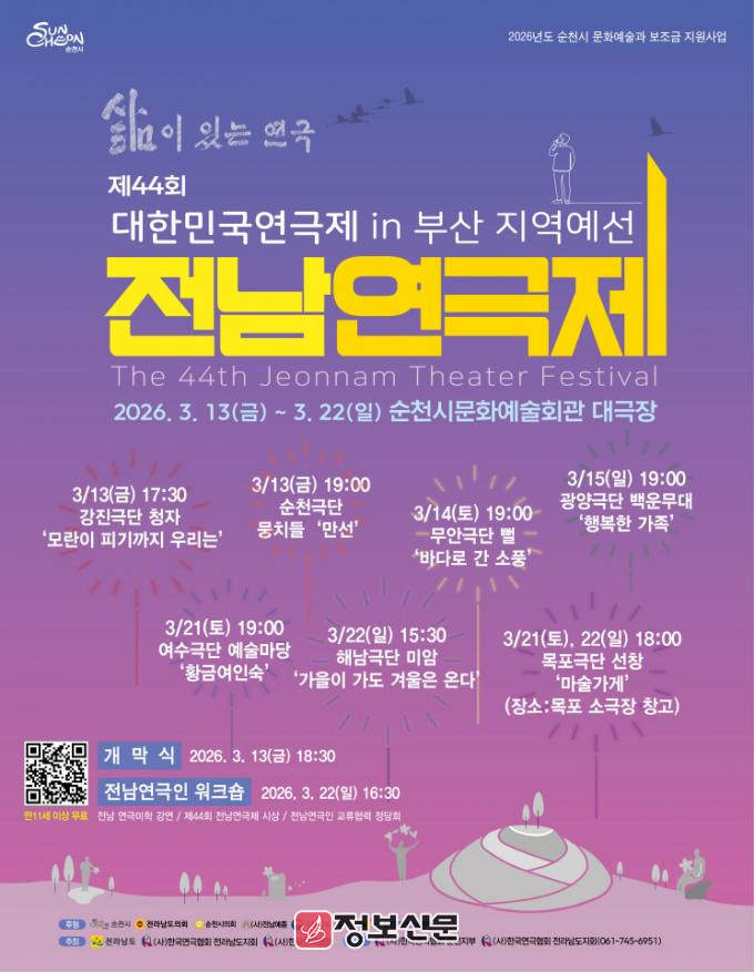 ![]() 삶이 있는 연극 ‘제44회 전남연극제’ 13일 순천에서 개막 |