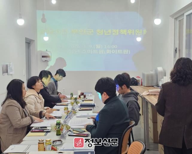 청년정책위원회는 부안군 청년 기본 조례에 따라 청년정책 주요 사항을 심의·의결하는 기구로 이날 회의에서는 부안군 청년정책 기본계획(2023~2027)의 단계적 이행을 위한 2026년도 추진 방향과 세부 실행과제에 대해 논의했다.