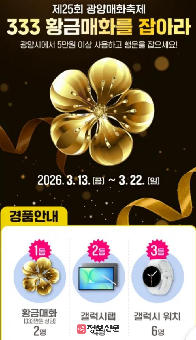 ![]() 제25회 광양매화축제, ‘GET 이벤트 4선’으로 재미 두 배 |