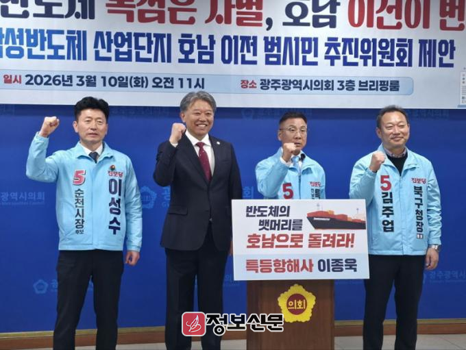 이종욱 후보는 이날 기자회견에서 지역 균형 발전을 위한 비전으로 용인 삼성반도체 산업단지 호남 이전을 발표, 이목을 집중시켰다.