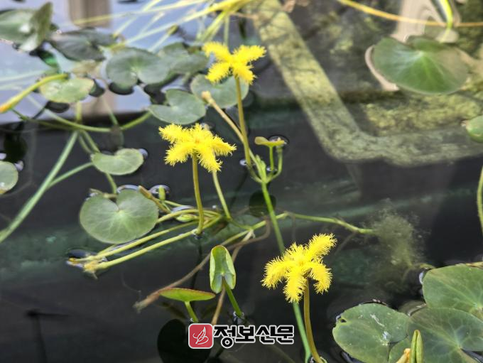 공원 내 수생식물 전시관에서는 노랑어리연이 물속에서 조용히 꽃을 피워, 작은 수중 해바라기처럼 빛나는 모습으로 관람객의 눈길을 끌고 있다.