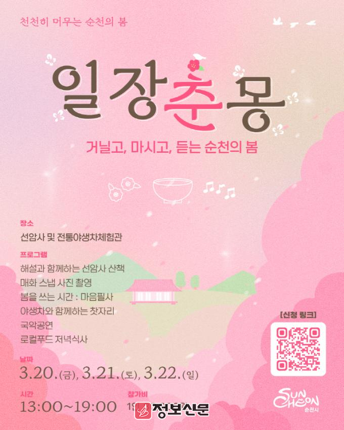 시 관계자는 “선암사의 봄 풍경과 야생차, 공연이 어우러진 감성적인 문화관광 프로그램을 정성껏 준비했다”며, “이번 프로그램이 일상에 지친 현대인들에게 쉼표(,)와 느낌표(!)가 되어, 순천에서의 하루가 오래도록 따뜻한 기억으로 남기를 바란다”고 말했다.