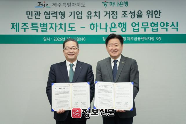 ![]() 제주특별자치도, 하나은행과 기업 유치 거점 조성 위한 업무협약 체결 |