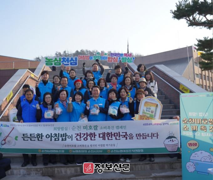 이번 캠페인은 아침 식사를 거르기 쉬운 학생들에게 우리 쌀의 소중함을 알리고 활기찬 하루를 응원하기 위해 마련되었다. 특히 이날 행사에는 순천농협 임직원을 비롯해 순천농협 여성조직 임원들이 대거 참여해 온정을 더했다.