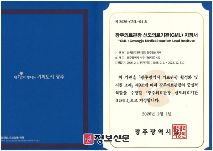 이번 지정에 따라 2026년 2월 1일부터 2028년 12월 31일까지 약 3년간 광주 의료관광을 선도하는 핵심 의료기관 역할을 수행하게 된다.