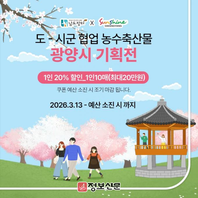 ![]() 광양시, 제25회 광양매화축제 맞아 남도장터 시군몰에서 농·특산물 기획전 개최 |