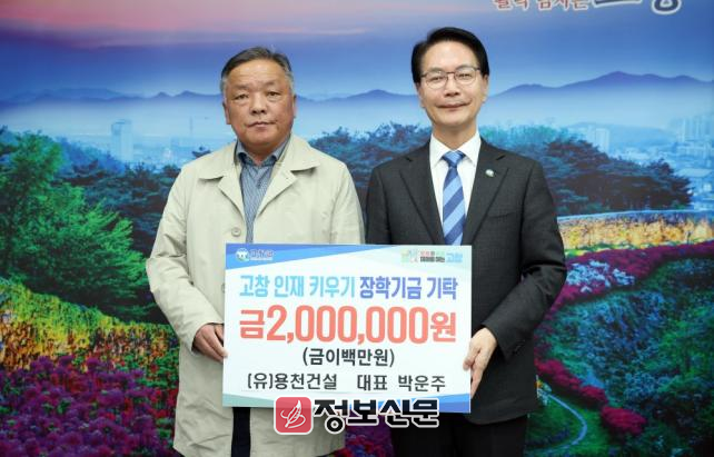 (재)고창군장학재단은 대한고속 이호진 대표가 500만원, 용천건설 박운주 대표가 200만원의 장학금을 기탁했다고 밝혔다.