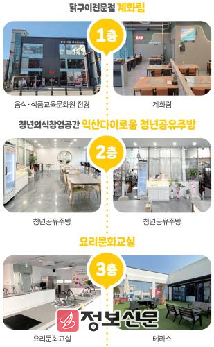익산역 앞 원도심에 위치한 음식·식품교육문화원은 원도심 재생사업, 치킨로드 사업, 청년 창업 지원을 결합한 복합 기능을 갖춘 것이 특징이다.