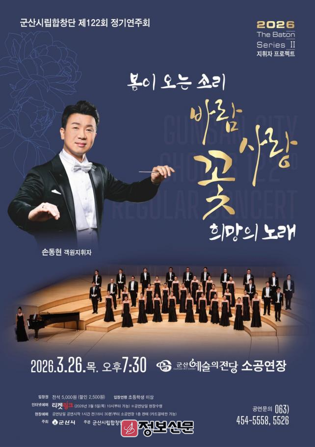 ![]() 군산시립합창단, 제122회 정기연주회 ‘봄이 오는 소리’ 개최 |