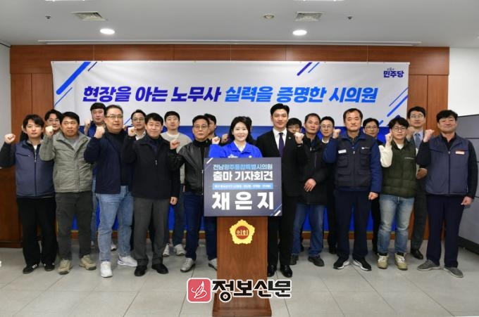 채 부의장은 지난 4년간 광주시의회 더불어민주당 비례대표 의원으로 활동하며 노동특별위원회를 구성해 노동 기본 조례를 제정하고 노동권익센터 설립을 이끌었다. 또, 보육대체교사 농성과 시내버스 파업 등 지역 현안을 현장에서 중재해 제도적 해결로 이어냈다고 강조했다.