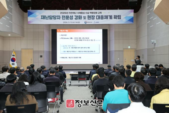 이번 교육은 행정안전부 주관 ‘찾아가는 맞춤형 자연재난 수습 교육’의 일환으로 마련됐으며, 실단과소장 및 읍·면장, 재난업무 담당자 등 100여 명이 참석한 가운데 사례 중심의 참여형 교육으로 진행됐다.