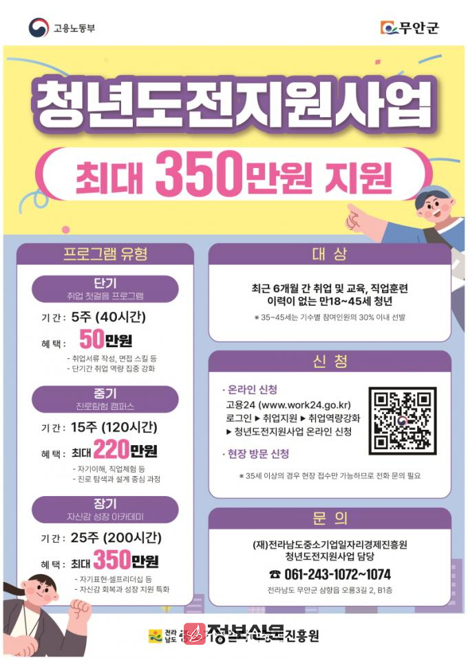 ![]() 무안군, 청년도전지원사업 참여자 모집 |
