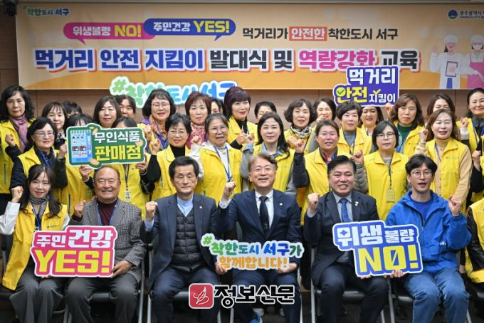 이날 발대식에는 김이강 서구청장과 먹거리 안전 지킴이 등 50여 명이 참석한 가운데 활동 다짐 선서와 함께 업종별 위생컨설팅 방법, 자주 발생하는 위반 사례 교육을 통해 현장 대응 역량을 강화했다.