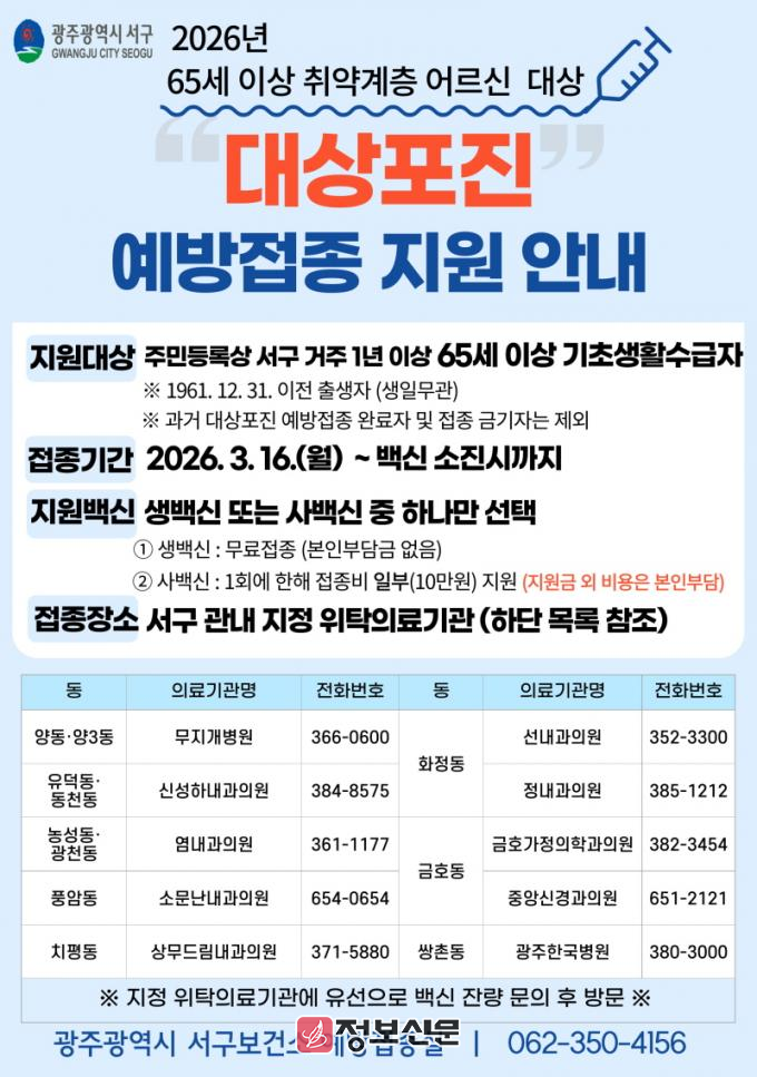 ![]() 광주시 서구, 어르신 건강 위한 대상포진 예방접종 지원사업 추진 |