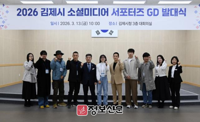 시는 13일 오전 10시 시청 3층 대회의실에서 ‘2026 김제시 소셜미디어 서포터즈 GD(Gimje Dreamers)’ 발대식을 개최했다고 밝혔다.