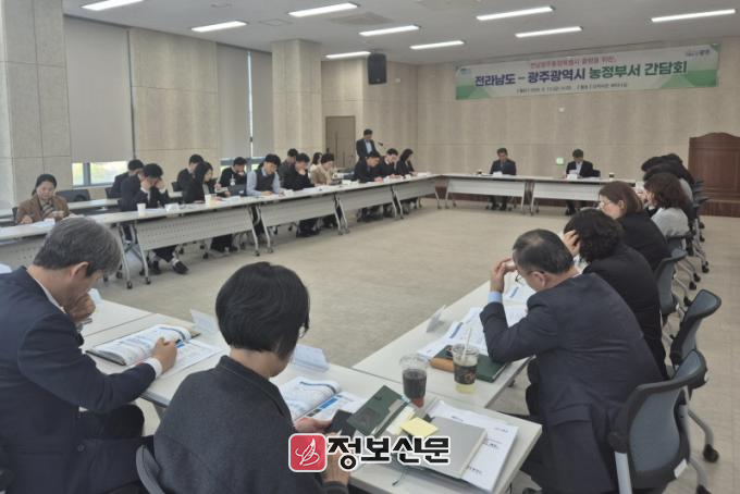 오영걸 광주시 경제창업국장, 유덕규 전남도 농축산식품국장이 공동주재한 이날 회의에는 양 지자체 농정분야 실무진들이 참석해 정책 협력의 기틀을 다졌다.
