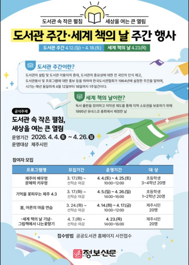 ![]() 탐라도서관, ‘도서관 주간·세계 책의 날’행사 운영 |
