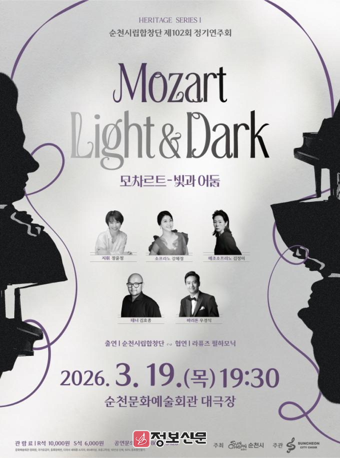 ![]() 순천시립합창단, 제102회 정기연주회 ‘모차르트의 빛과 어둠’ 개최 |