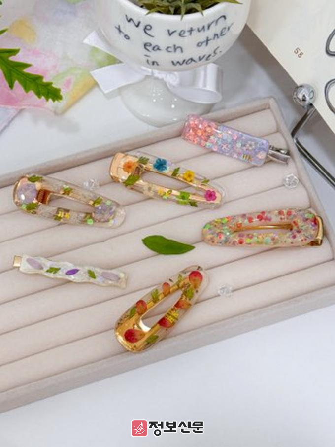 이번 프로그램은 봄을 맞아 마련된 특별 체험 프로그램으로, 투명한 레진 재료를 활용해 반지와 머리핀 등 나만의 액세서리를 직접 제작해 보는 체험이다. 참가자는 다양한 색상과 장식 파츠를 선택해 자신만의 디자인을 구상하고, 레진을 몰드에 주입한 뒤 장식을 배치해 자신만의 작품을 완성하게 된다.