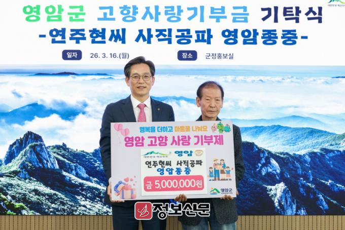 ![]() 영암군, 연주현씨 사직공파 영암 종중 고향사랑기부 기탁 |