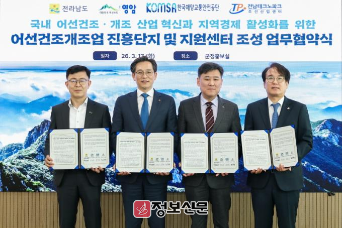 우승희 영암군수는 “협약을 바탕으로 국내 어선 건조·개조의 핵심 기관이 될 센터를 성공적으로 건립해 조선업 경쟁력을 한 단계 높이겠다. 지역 조선업의 체질을 개선하고, 미래 어선 시장을 선도하는 전환점을 마련하겠다”라고 전했다.