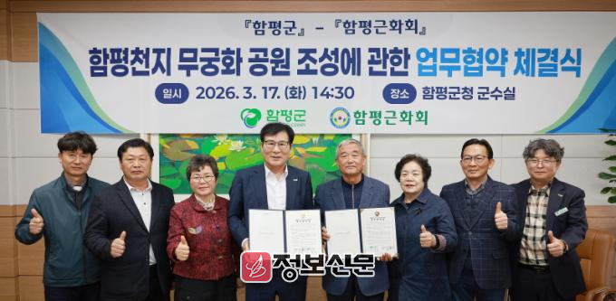 함평군은 17일 “함평천지 무궁화 공원 조성을 위한 함평군과 함평근화회 간 업무협약 체결식이 이날 오후 군수실에서 열렸다”고 밝혔다.