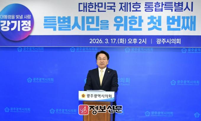 강 후보는 17일 광주시의회에서 ‘특별시민을 위한 첫 번째 약속, 특별시민수당’ 비전을 발표했다.