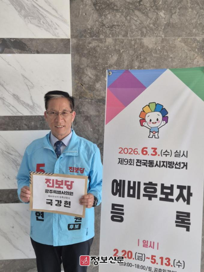 ![]() 진보당 국강현 광산구의원, 전남광주특별시의원 예비후보 등록 |