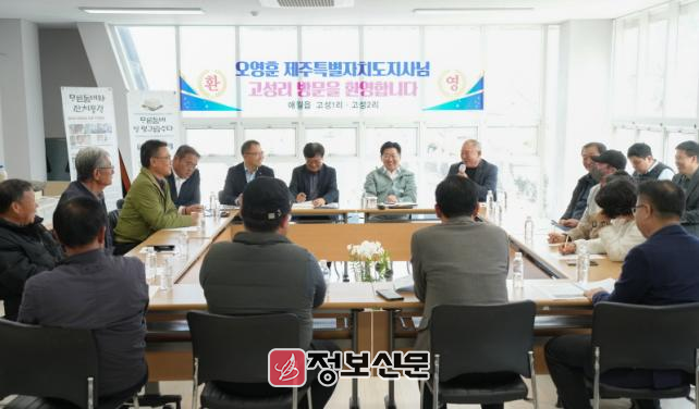 오영훈 지사는 고성1리 사무소에서 고성 1·2리 마을 주민들과 간담회를 갖고 지역 민원을 수렴했다.