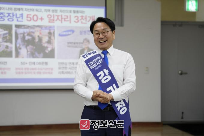 강 후보는 끝으로 “대기업을 유치하고, 미래산업을 키워 양질의 일자리를 만드는 것도 중요하지만 더 중요한 것은 우리 지역을 묵묵히 버텨냈던 지역 기업을 살리는 것과 서울로 떠나지 않고 광주에 살아왔던 ‘나’의 일자리를 채우는 것이다”며 “성숙한 지혜와 숙련된 기술을 보유한 중장년의 경험이 지역의 자산으로 축적되고, 개인의 소득으로 이어지는 ‘부강한 일자리특별시’를 반드시 실현하겠다”고 말했다.
