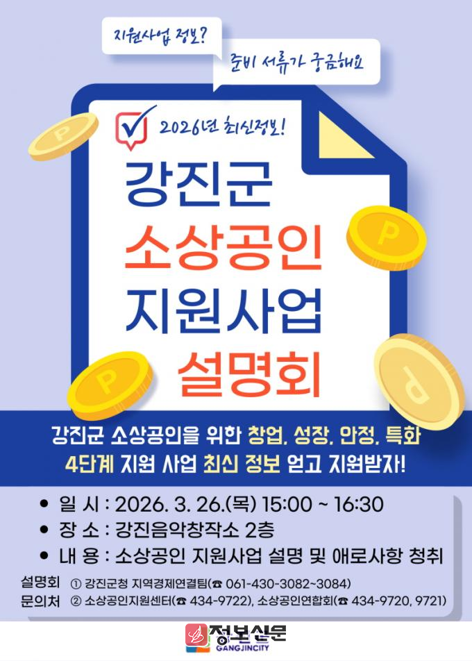 ![]() 강진군, 2026년 소상공인 지원사업 설명회 개최 |