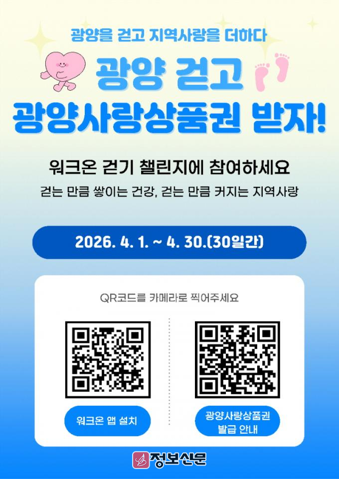 ![]() 광양시, 워크온 보상 ‘광양사랑상품권’으로 변경 지급 |