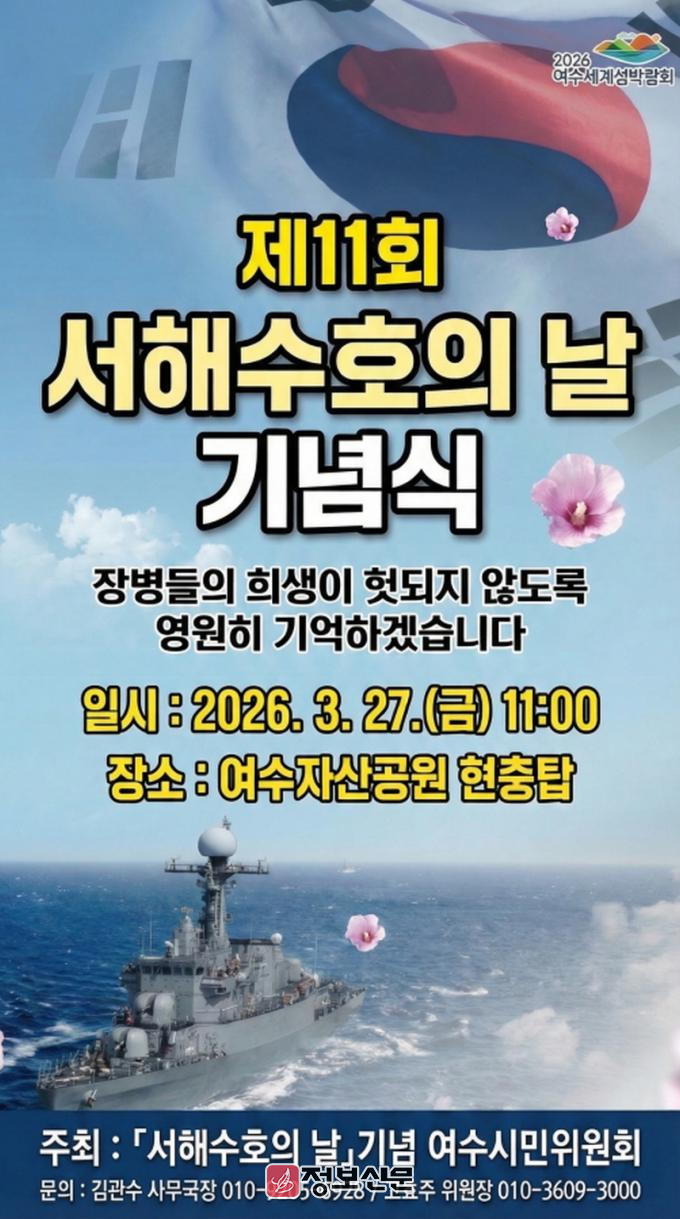 고효주 서해수호의날 여수시민위원회 위원장은 "서해수호 영웅들의 희생과 헌신을 기억하고, 나라를 지키는 마음을 다시 새기는 뜻깊은 자리가 되길 바란다"고 말했다.