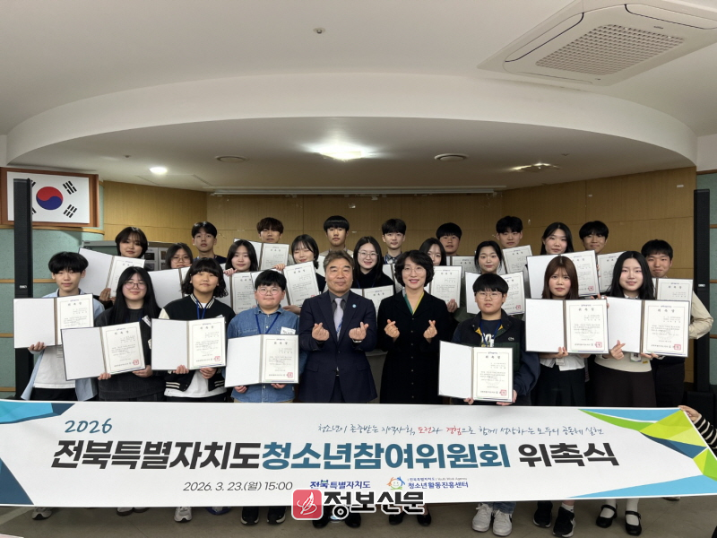 ![]() 전북특별자치도, 2026년 청소년참여위원회 위촉식 개최 |