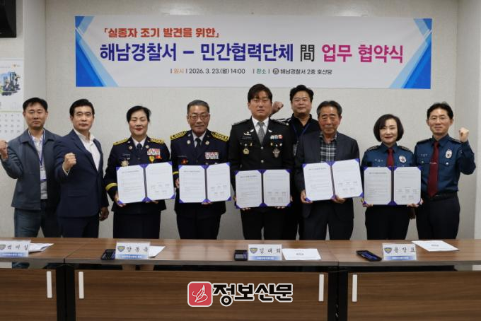 ![]() 해남경찰서, 민간단체와 실종자 조기 발견위한 업무협약 체결 |