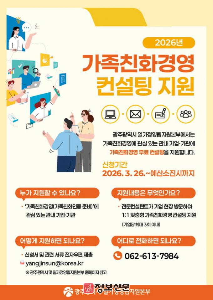 ![]() 광주광역시, 가족친화경영 컨설팅 참여 기관 모집 |