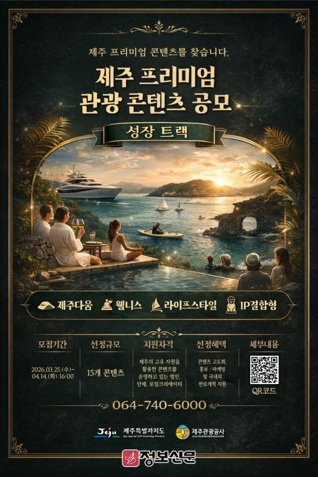 ![]() 제주관광공사, 트렌드 선도 프리미엄 관광 콘텐츠 공모 사업 추진 |