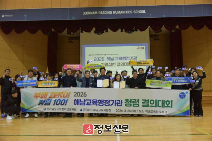 해남교육지원청 조연주 교육장과 학생교육원 김창근 원장은 “청렴은 공직사회의 기본 가치이자 신뢰의 출발점이다”라며 “앞으로도 두 기관이 긴밀히 협력해 청렴한 공직문화를 정착시키고 지역사회와 함께하는 깨끗한 교육행정을 만들어가겠다”라고 말했다.