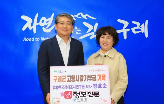 ![]() (재)한국경제조사연구원 장효순 박사, 구례군에 고향사랑기부금 200만원 기탁 |